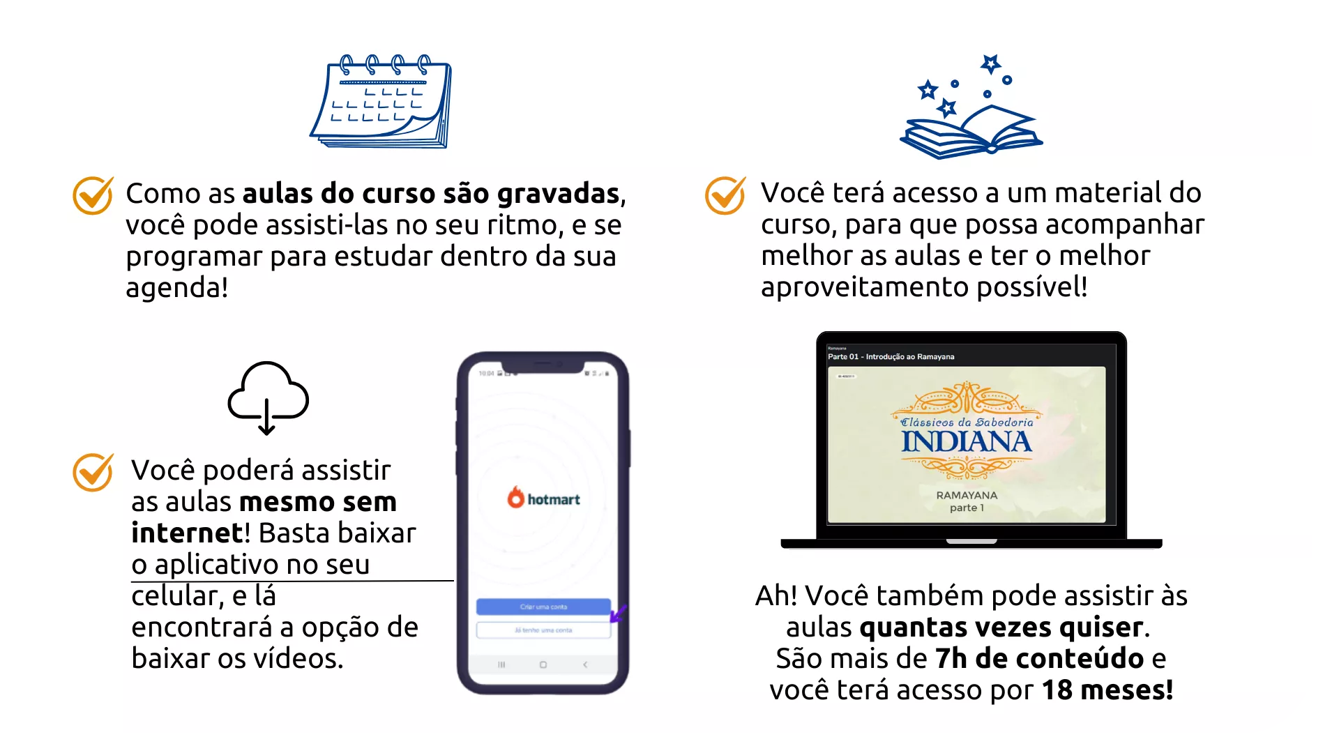 Assim que a plataforma aprovar a compra do curso, o acesso estará liberado e você poderá assistir às aulas por um ano e meio, 18 meses!