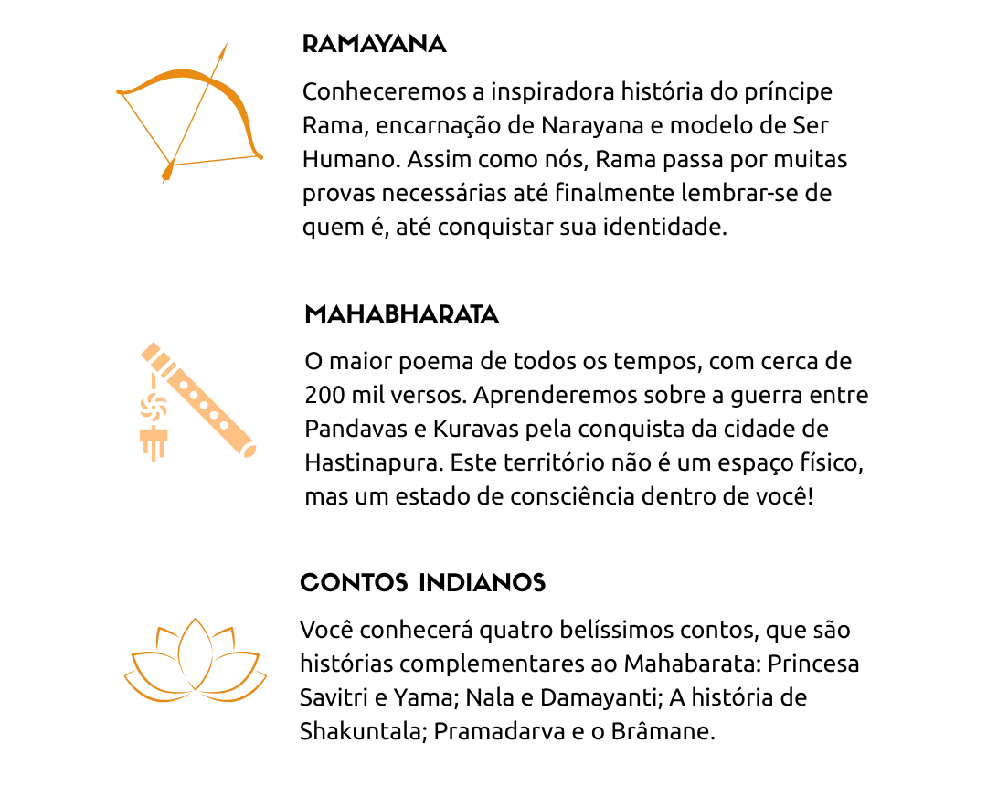 A proposta deste curso é entrar nos profundos significados da Mitologia indiana, e perceber que todos eles falam um mesmo personagem: VOCÊ! Estão mostrando o que cabe ao Ser Humano e como podemos cumprir aquilo que nos corresponde.